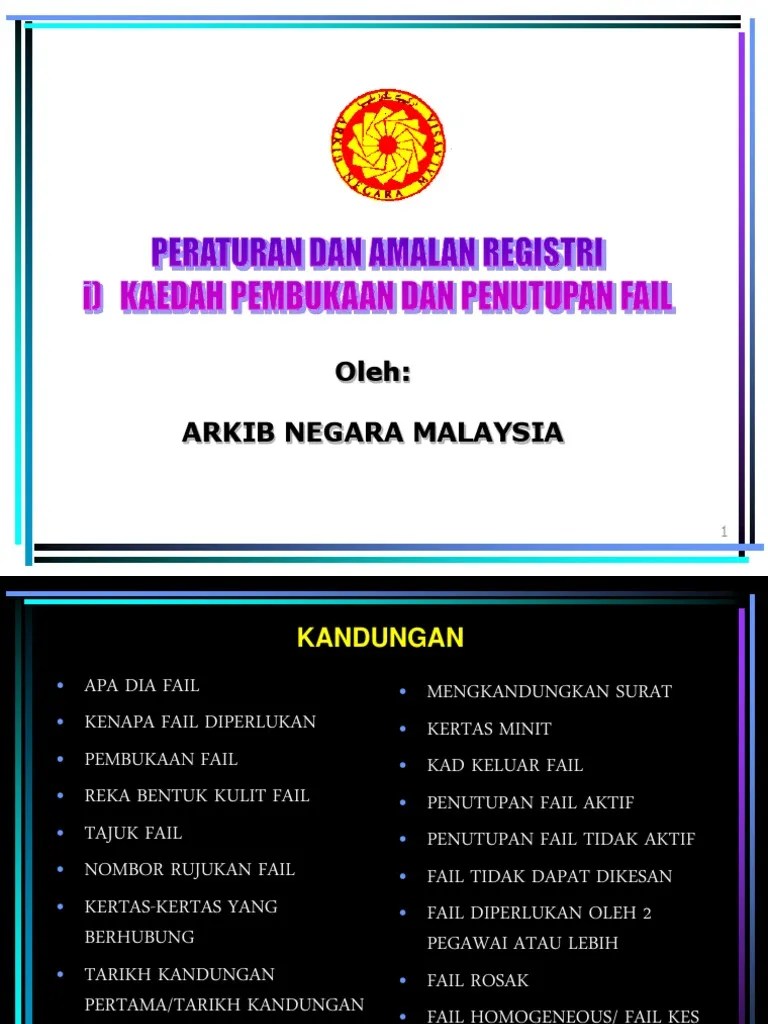 Siri pengurusan rekod kerajaan panduan pengendalian fail rasmi arkib . Pergerakan fail/ buku daftar fail (sekiranya ada). Oleh pihak arkib negara malaysia dan pejabat ketua pegawai keselamatan kerajaan. Antara kementerian pendidikan malaysia (kpm) dengan arkib negara malaysia. Panduan ini adalah selaras dengan peruntukan seksyen 7 (h), akta arkib negara. Kad disimpan di unit registri fail terperingkat hendaklah diedarkan dengan